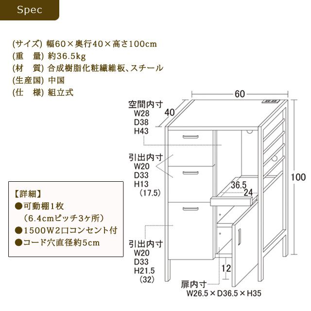 【商品サイズ】幅60×奥行40×高さ100cm