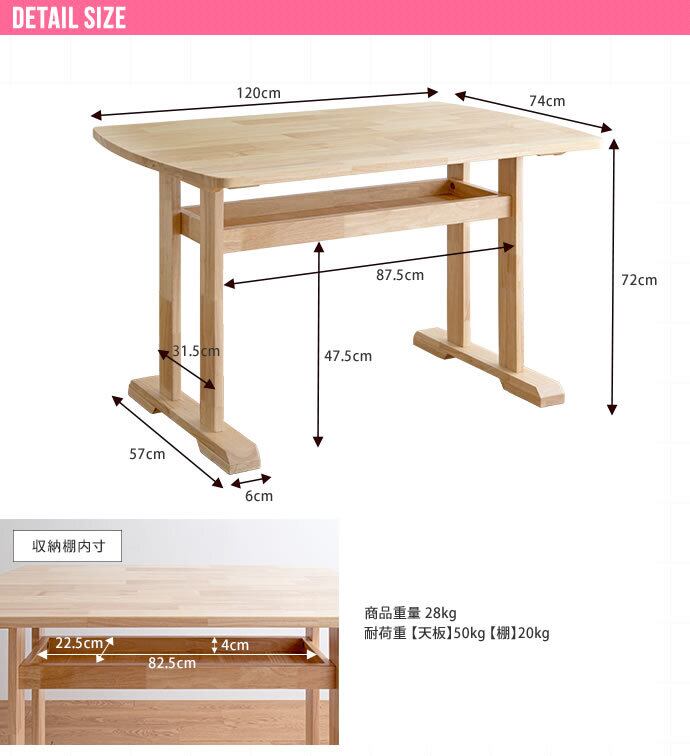 【ダイニングテーブル】幅120cm×奥行74cm×高さ71cm