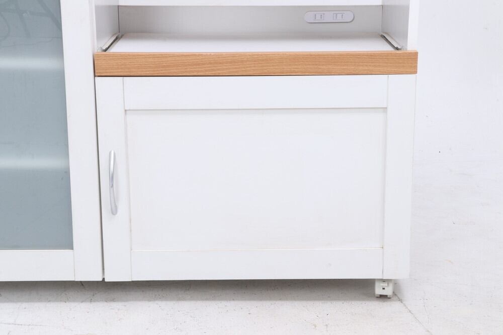 スライド棚の奥には2口のコンセントがついているので、使い勝手もバツグンです。