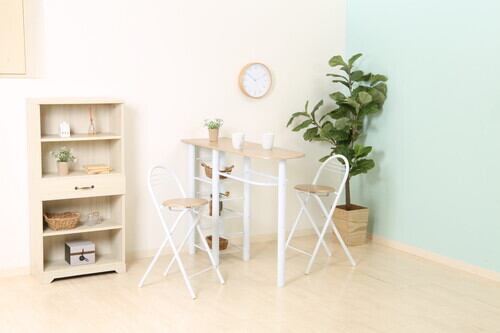 小物をたくさん収納できる実用的でおしゃれなカウンターテーブルとチェアです。