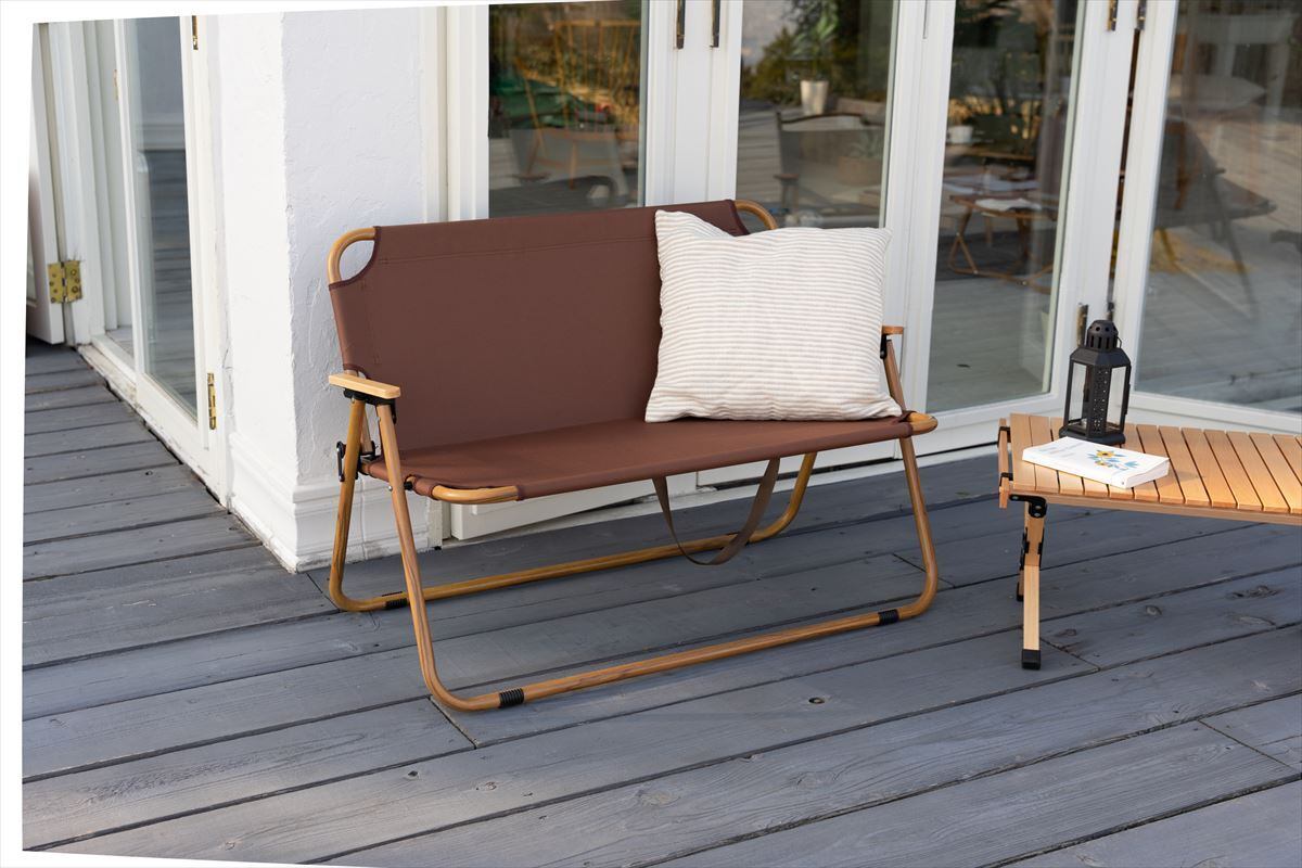 折りたたみ式なので、持ち運びや収納も簡単。アウトドアイベントやキャンプ、バーベキューなど、様々な場面で活躍します。コンパクトなサイズでありながら、2人掛けの座面サイズなので、友人や家族とゆったりと座って楽しむことができます。