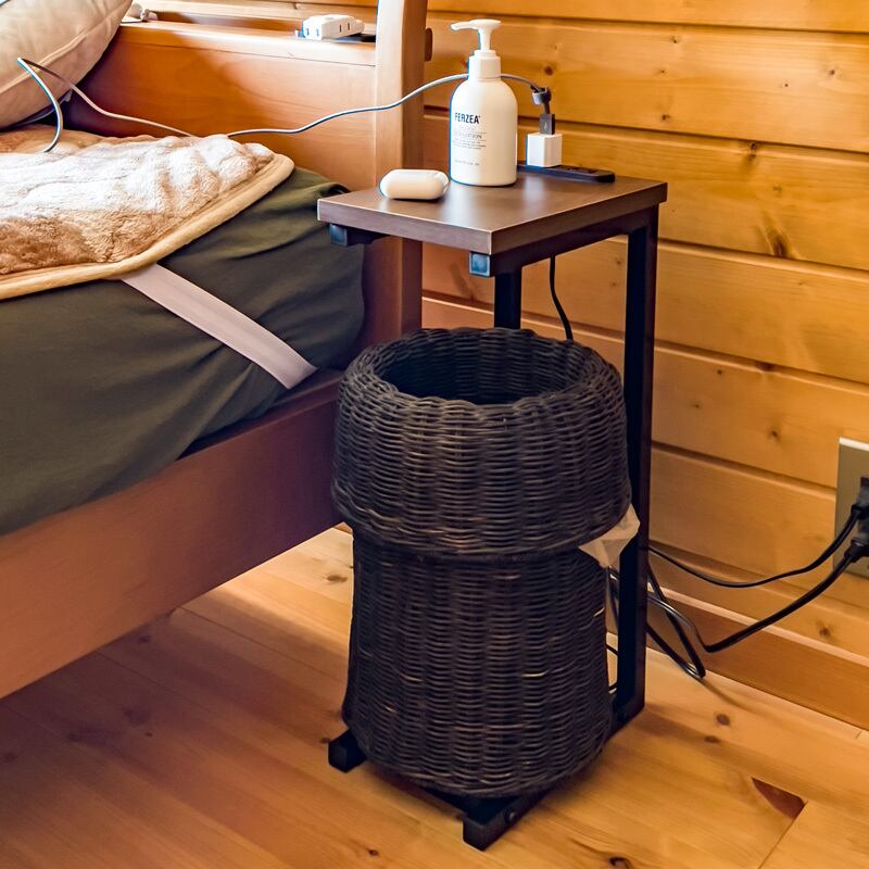 ベッドやソファサイドで役立つ幅約18センチとスリムなサイドテーブルです