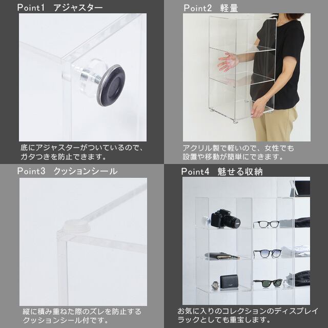 【材 質】アクリル(側板5mm厚、棚板4mm厚、地板8mm厚)
