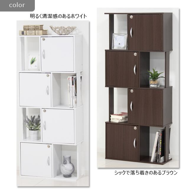 家具 ラック鍵付き4段 ホワイト/ブラウン ※北海道・沖縄・離島は別途条件あり