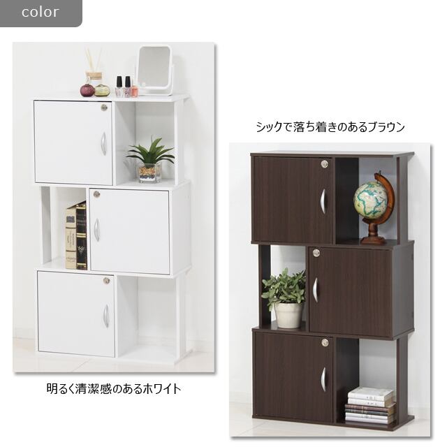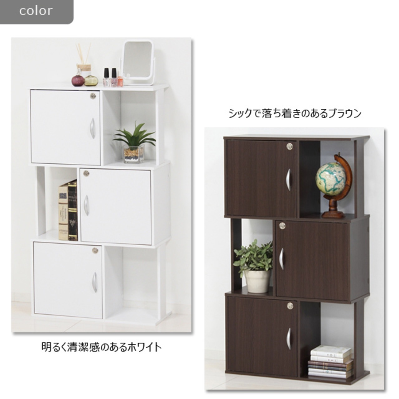 家具 ラック鍵付き3段 ホワイト/ブラウン ※北海道・沖縄・離島は別途条件あり