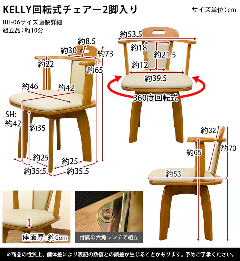 KELLY 回転式チェア 2脚入り DBR/LBR