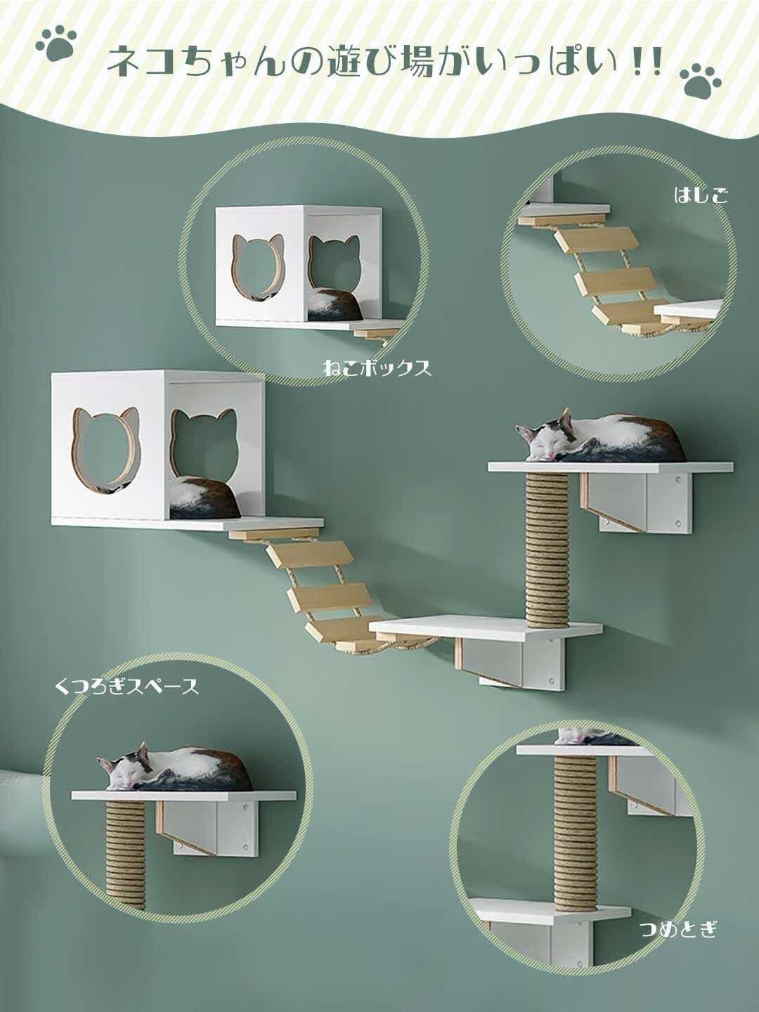 キャットタワー 壁掛け ホワイトボックス はしご 猫 タワー 猫の家具 キャットウォーク 壁付け