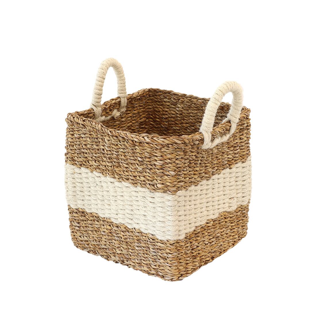 ☆水草とジュートで編んだ天然素材のスクエア型バスケット