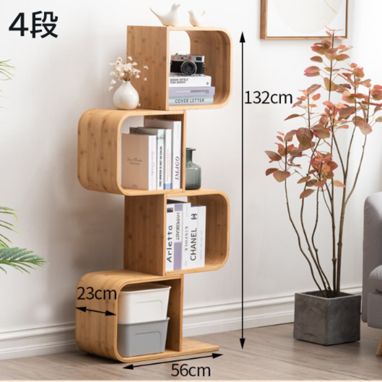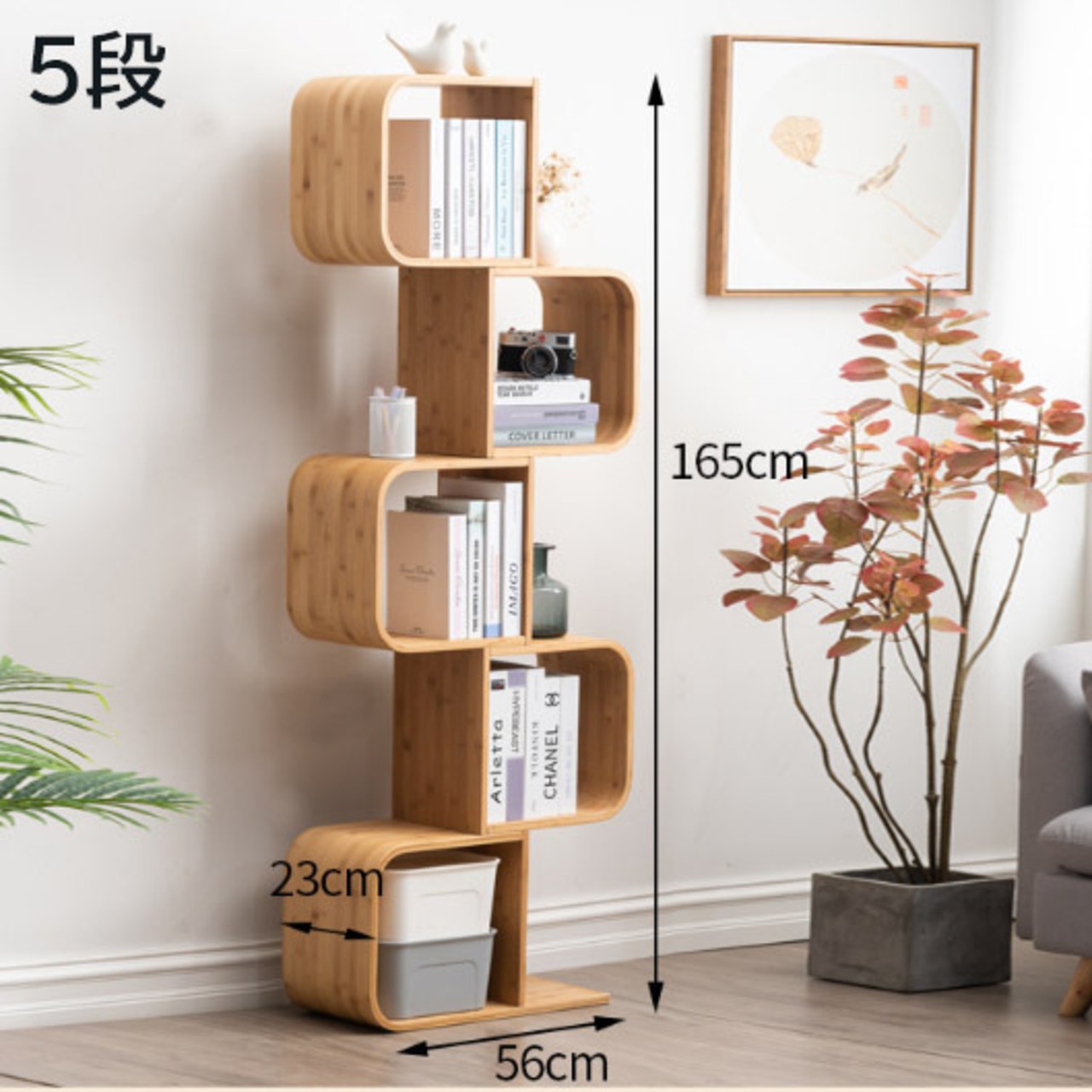 S字型本棚 本収納 コミックラック お洒落ラック ジグザグ樹木設計 ブックシェルフ リビング【5段】