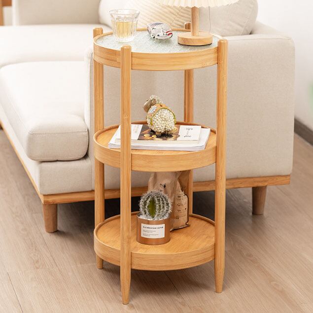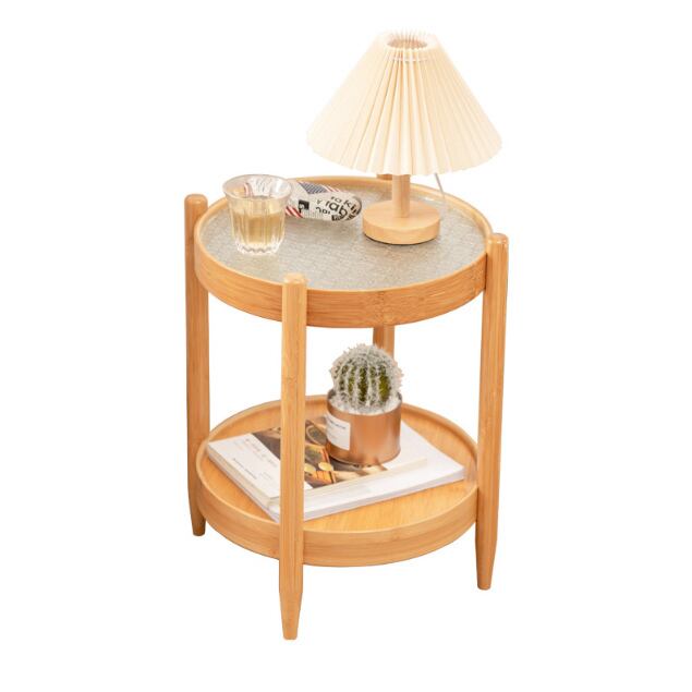 ラウンド 円形 サイドテーブル ガラス天板 ベッドサイドテーブル インスタ映え 北欧 韓国風インテリア【2段】